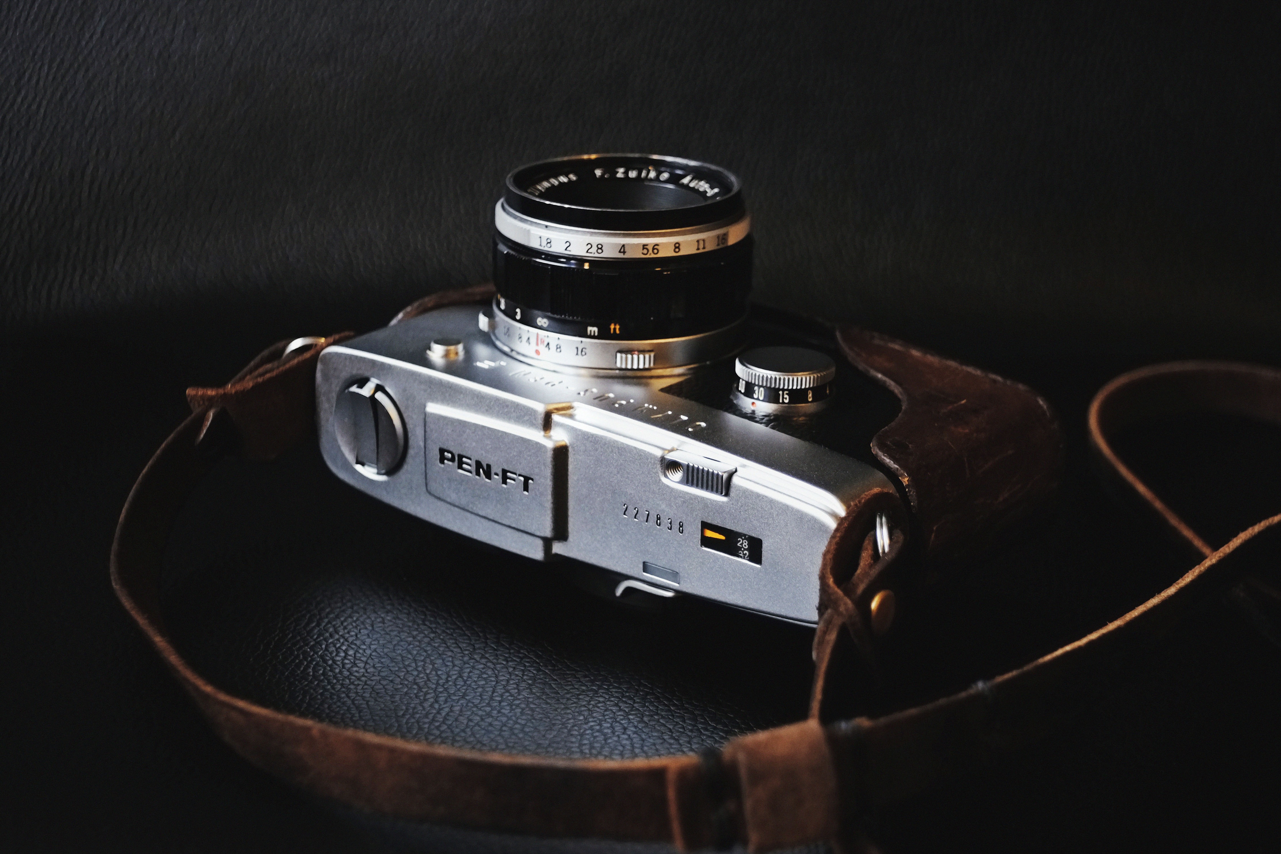 Старый фотоаппарат на черном фоне - 4452x2968