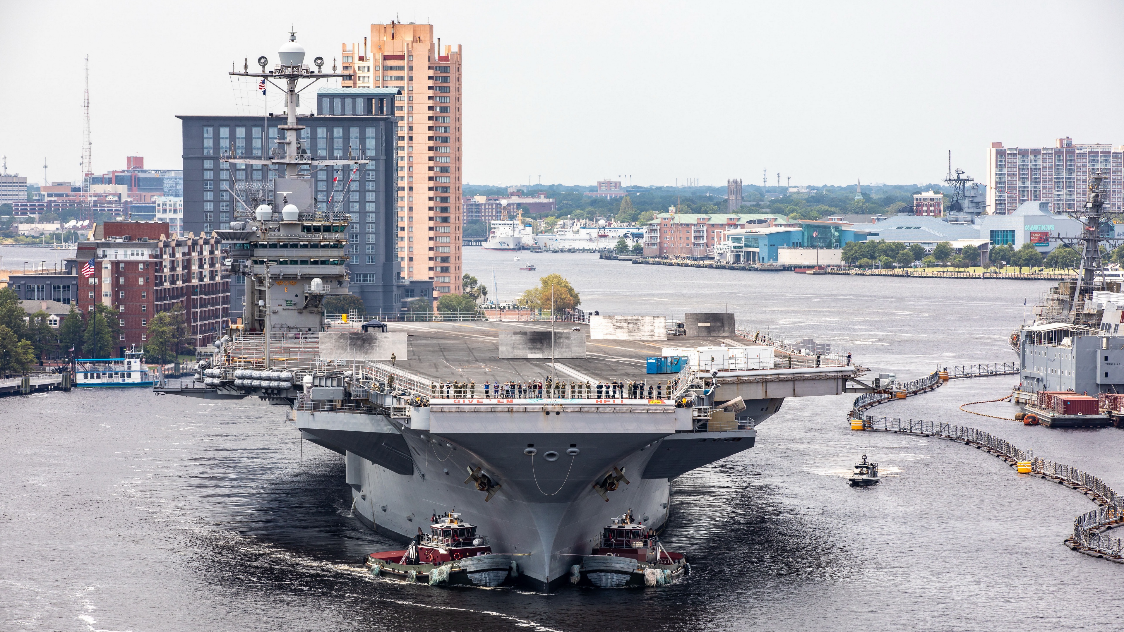 Большой авианосец в порту - 3840x2160