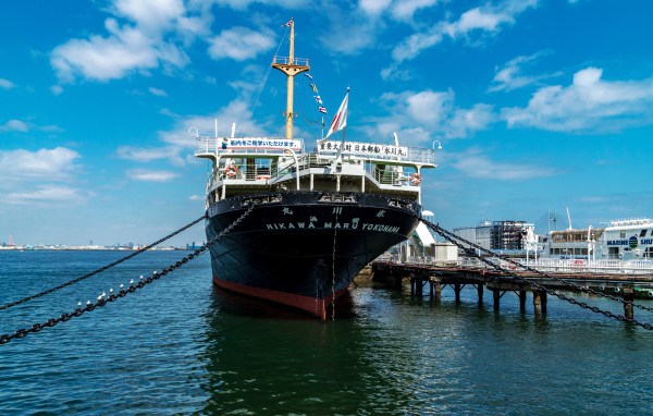 Большой пассажирский корабль NYK Hikawamaru в море Обои для рабочего стола 600x382