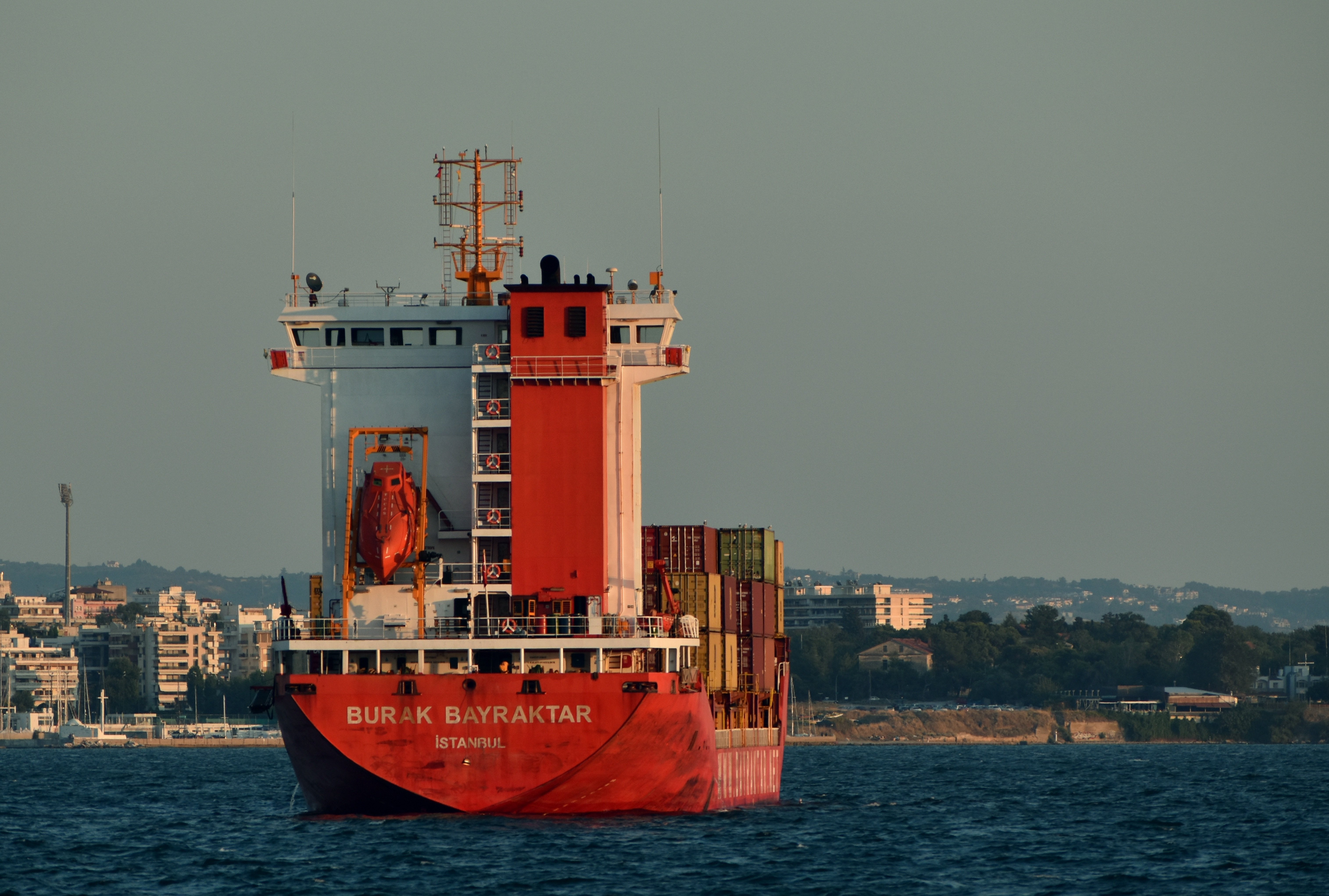 Грузовой танкер в море у города Обои для рабочего стола 1024x768