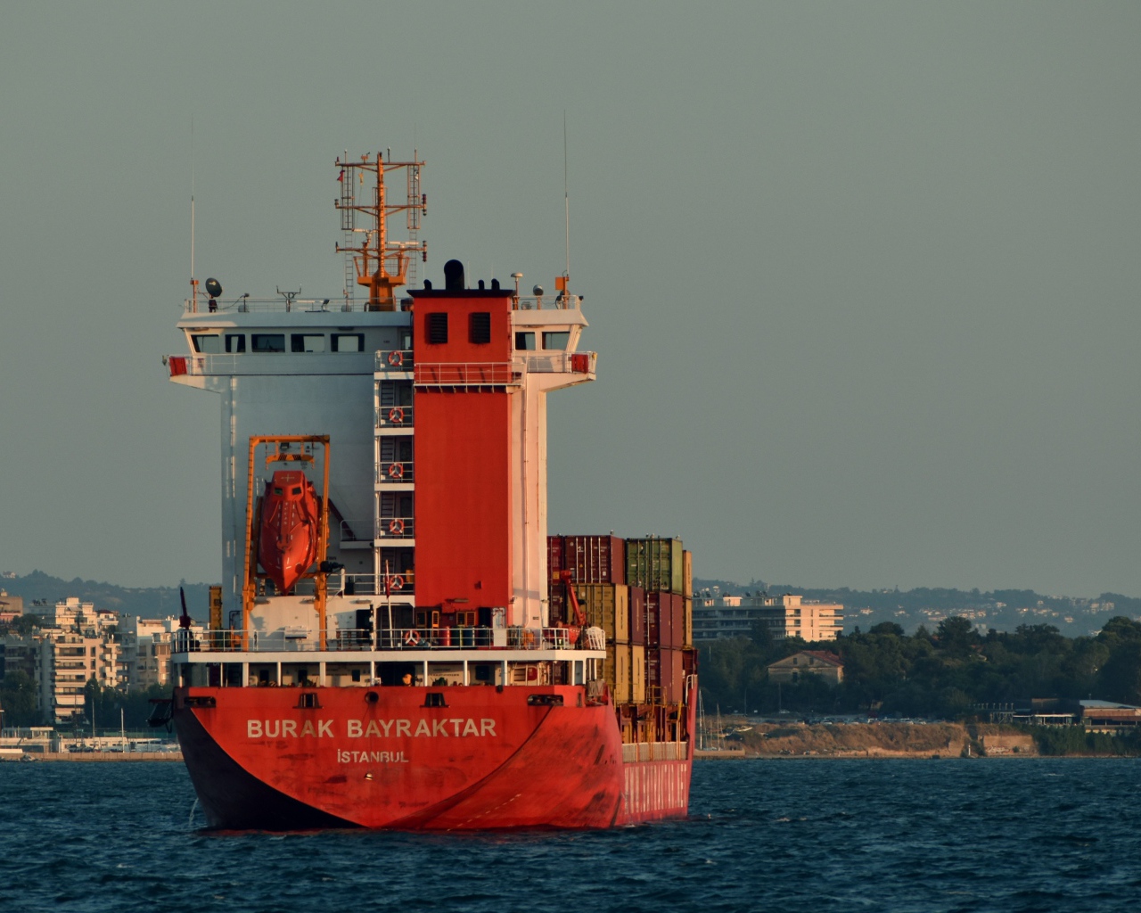 Грузовой танкер в море у города Обои для рабочего стола 1280x1024