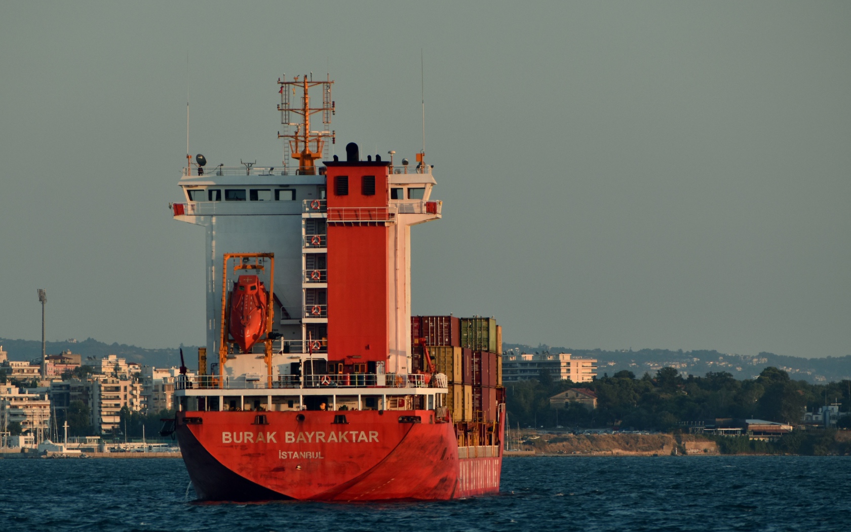 Грузовой танкер в море у города Обои для рабочего стола 1680x1050