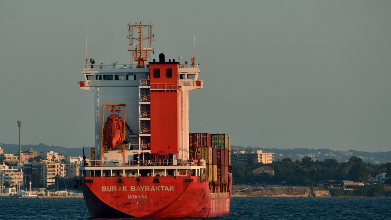 Грузовой танкер в море у города Обои для рабочего стола 1366x768