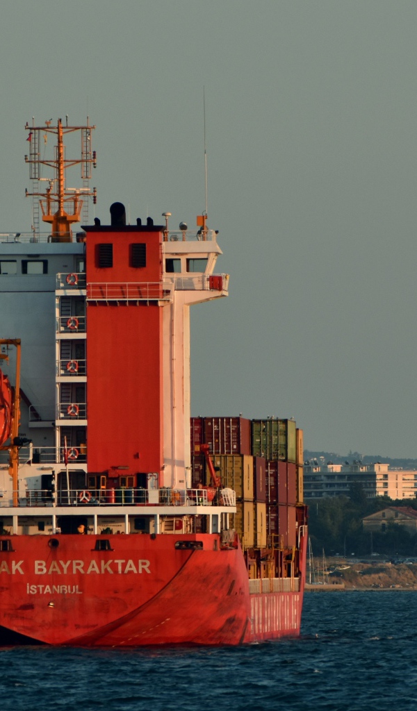 Грузовой танкер в море у города Обои для рабочего стола 600x1024