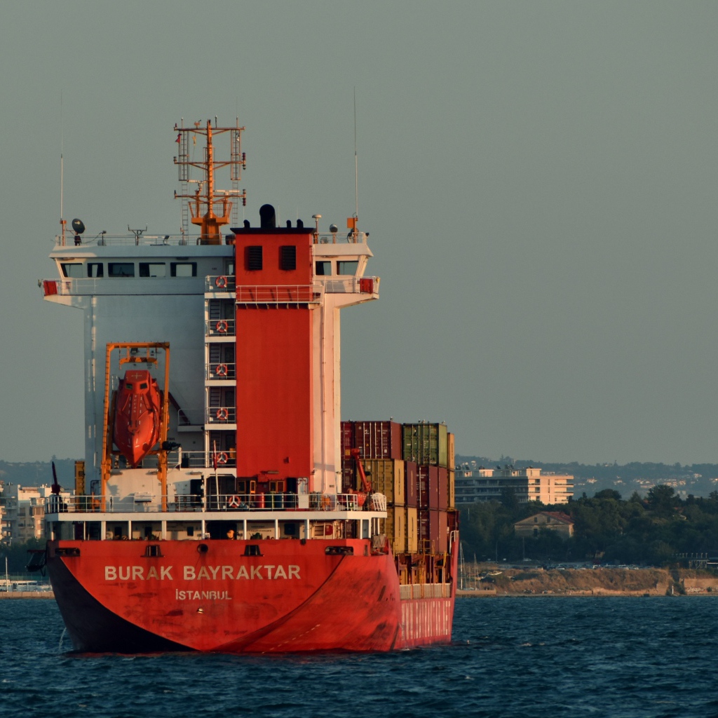 Грузовой танкер в море у города Обои для рабочего стола 1024x1024