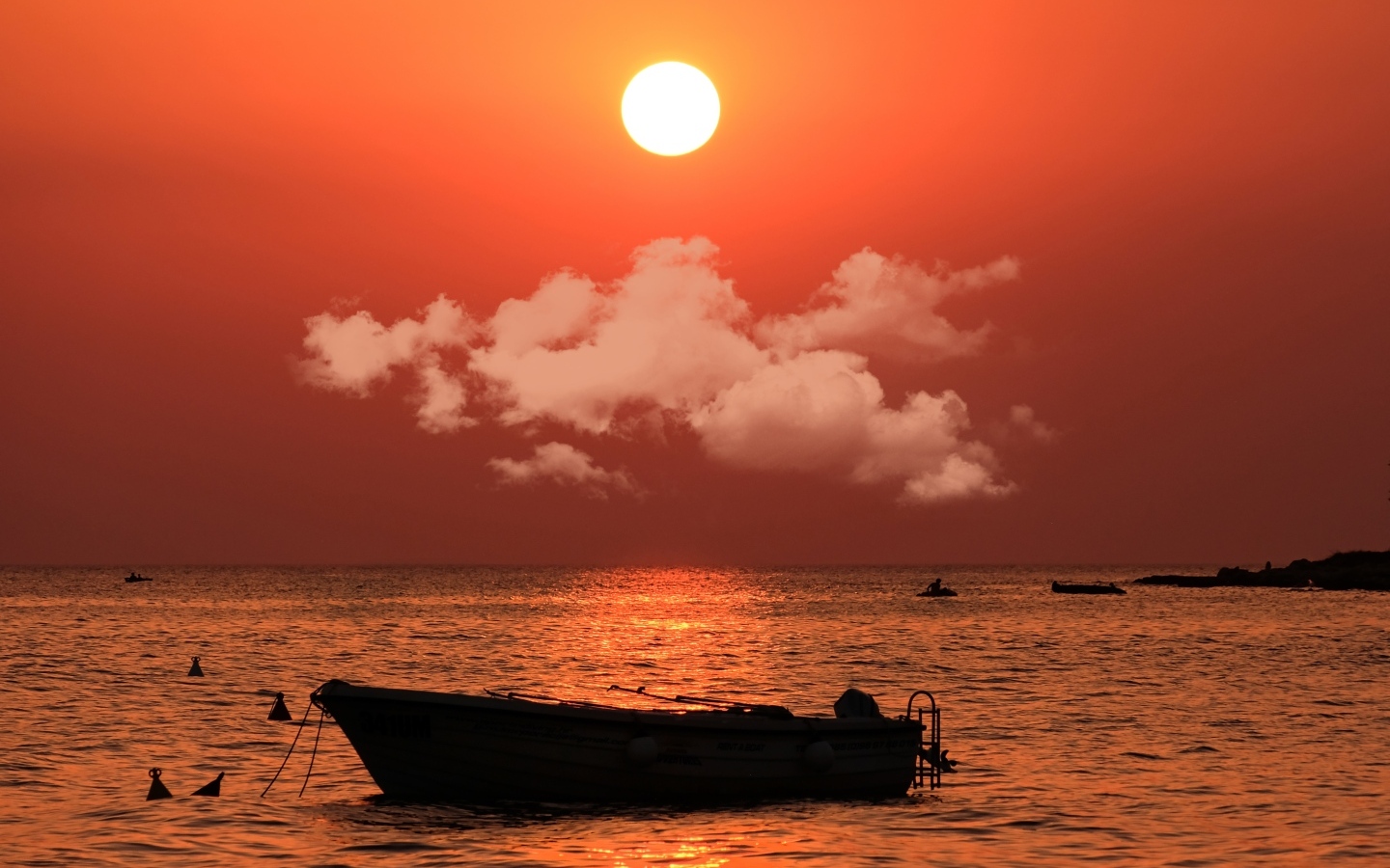 Старая лодка в воде на закате солнца Обои для рабочего стола 1440x900