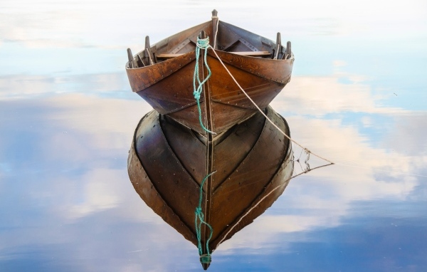 Большая деревянная лодка отражается в воде Обои для рабочего стола 600x382