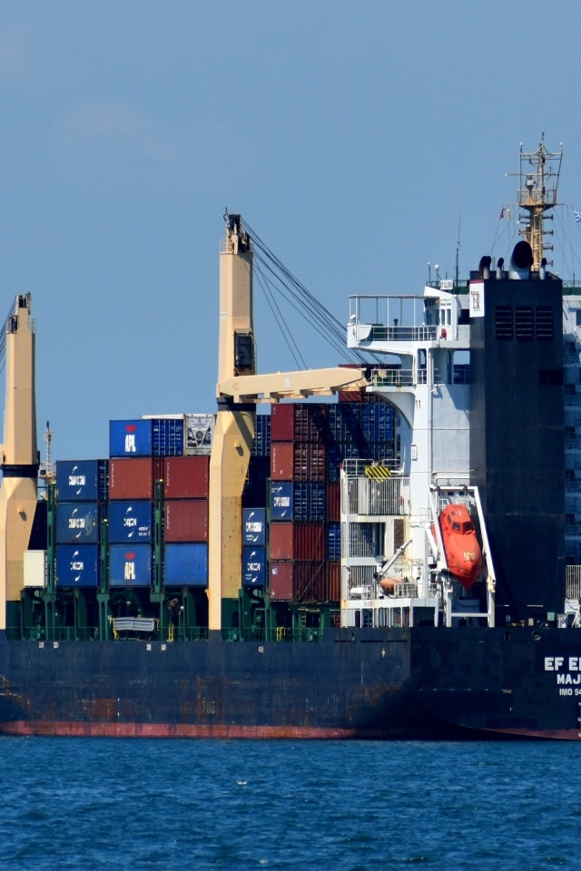 Большой грузовой танкер в море Обои для рабочего стола 640x960