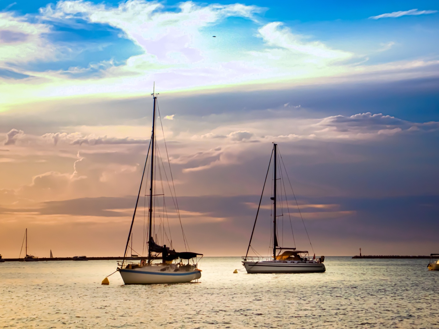 Две парусные яхты в море на закате Обои для рабочего стола 1400x1050