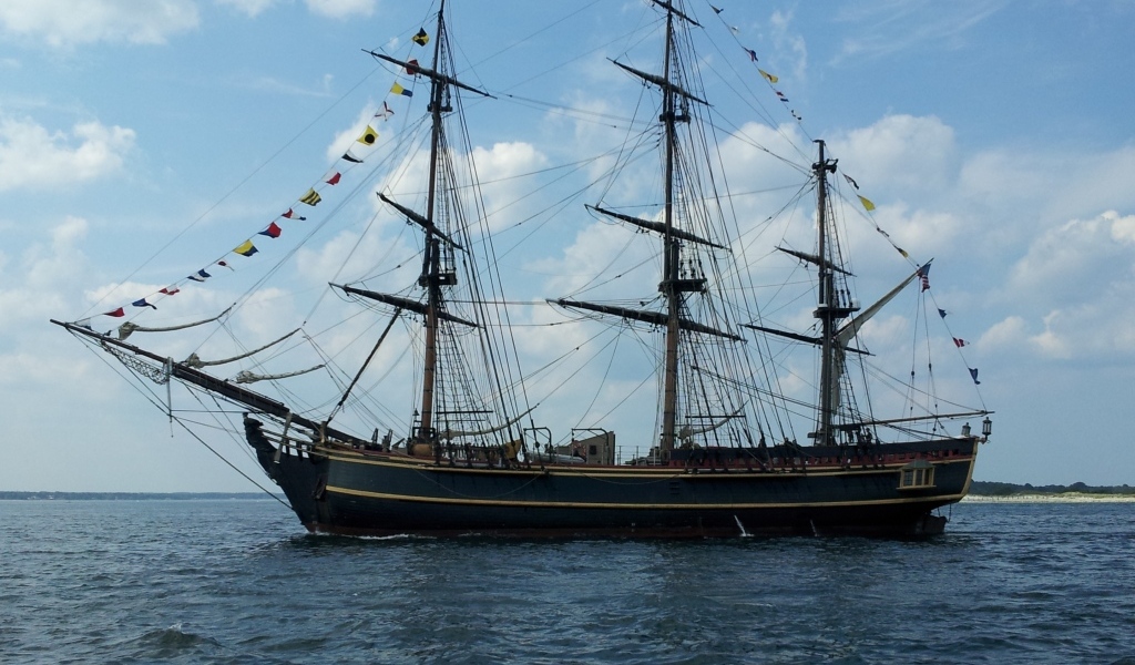 Большой корабль в море под голубым небом Обои для рабочего стола 1024x600