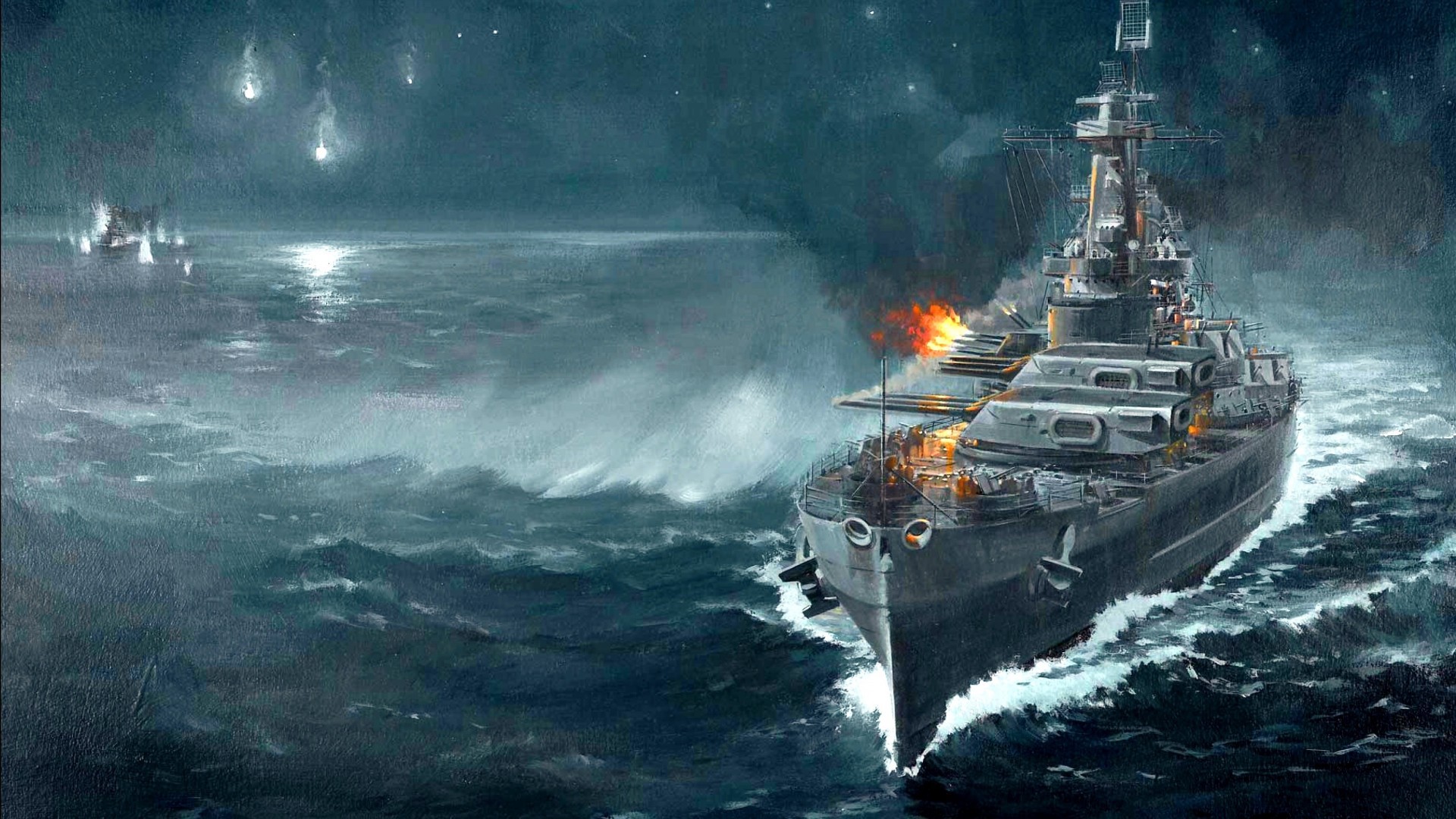 Ночной морской бой - 1920x1080
