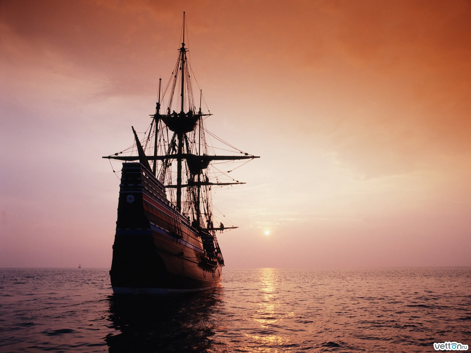Парусник идет на закат солнца - 1600x1200