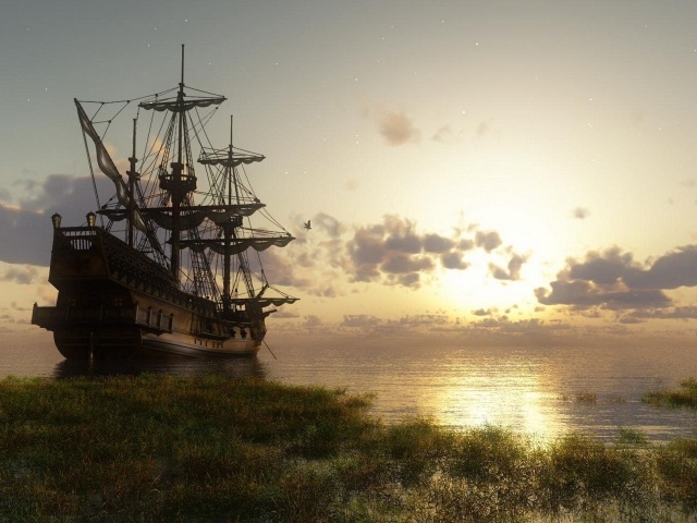 Обои: Старинный корабль у берега