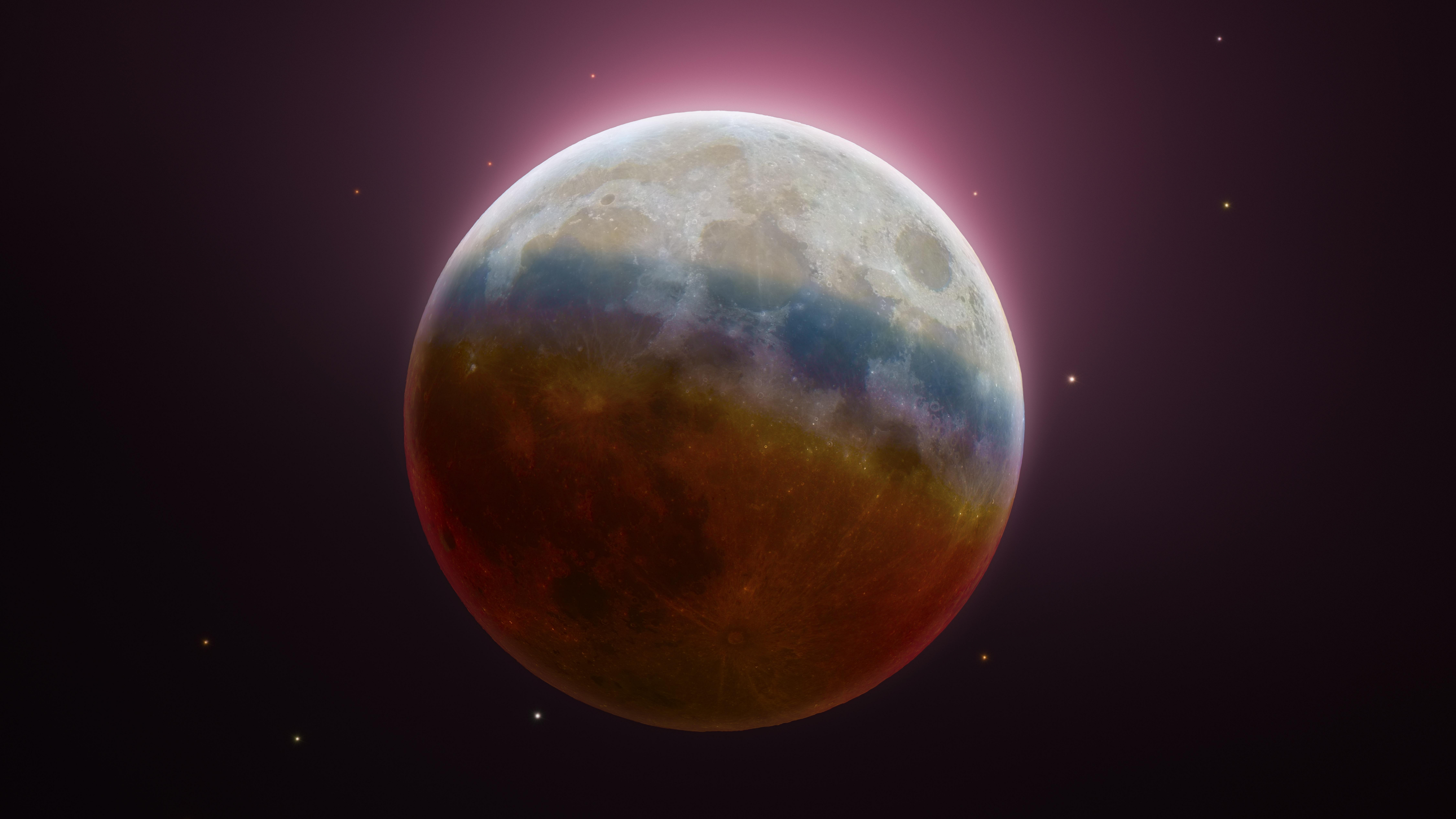 Большая луна на коричневом фоне - 7680x4320