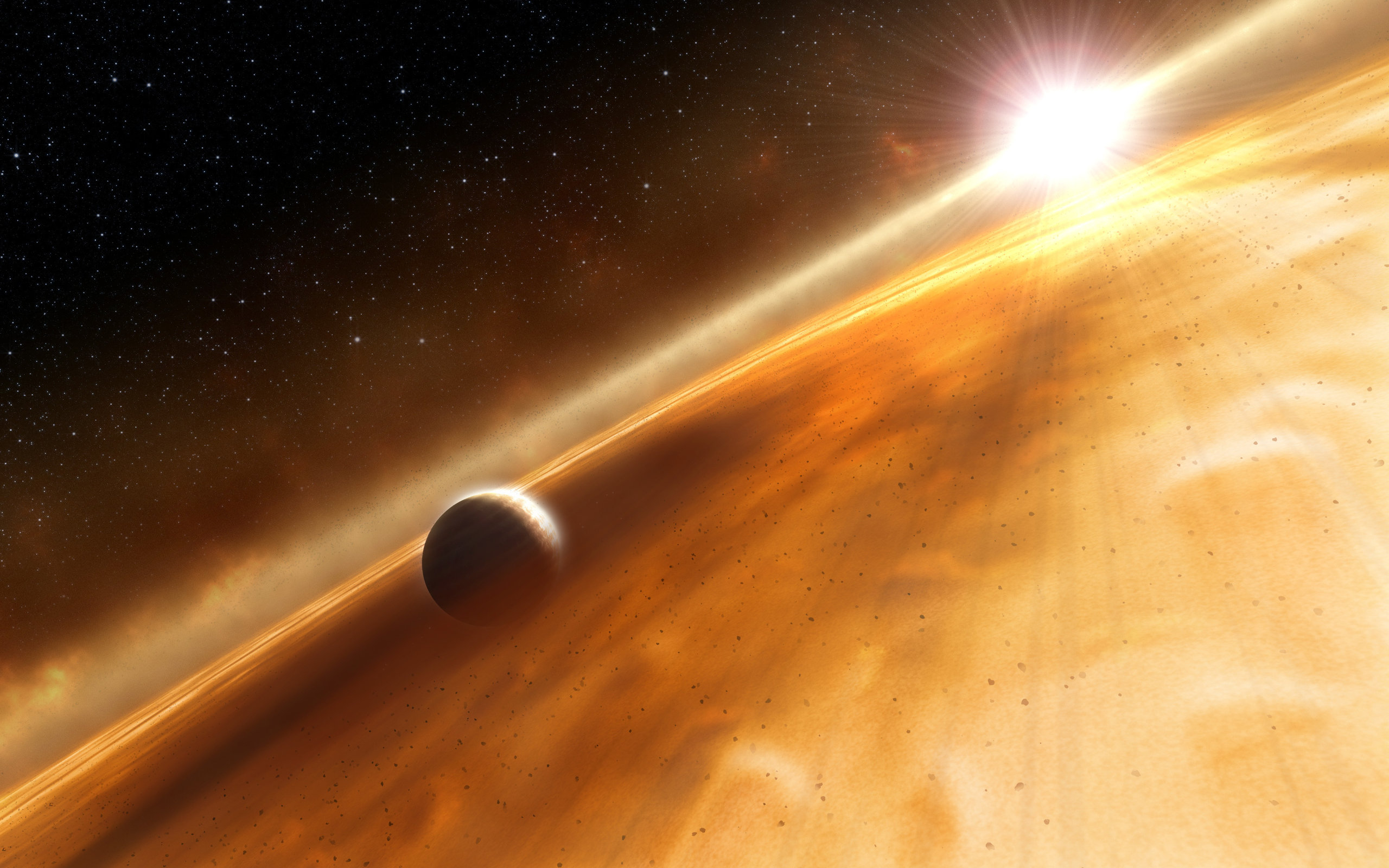 Астероиды летают вокруг желтой планеты