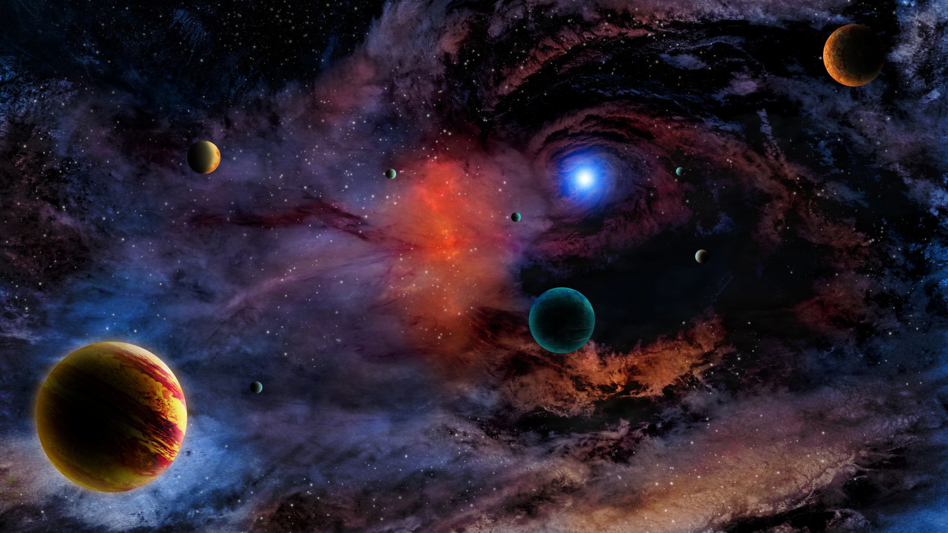 Много планет в спирали - 1920x1080