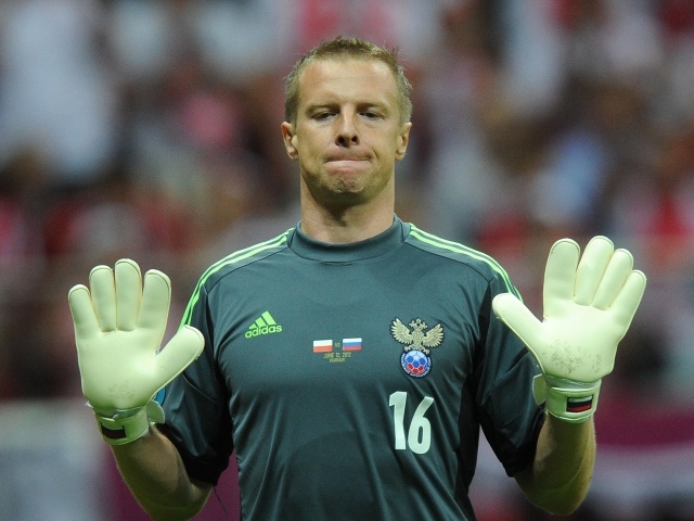 Блистательный вратарь Российской сборной Вячеслав Малафеев