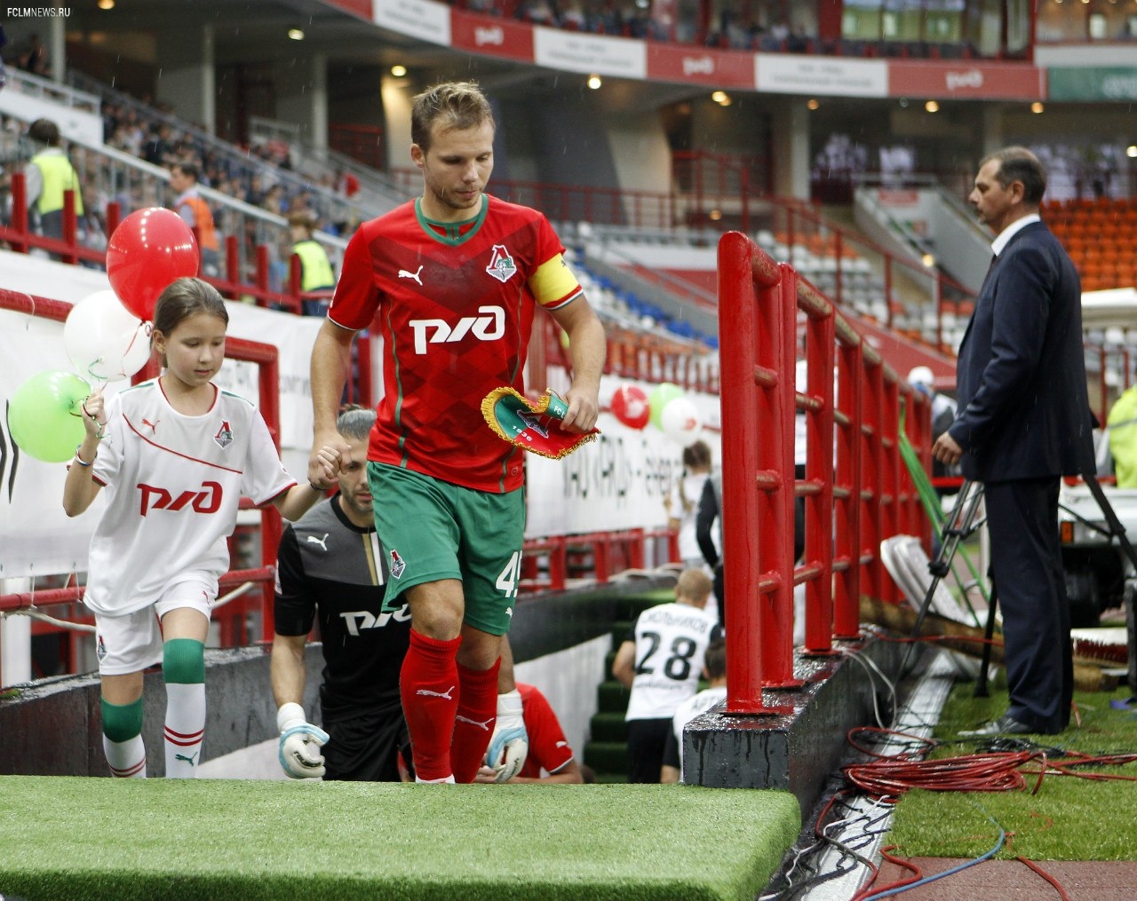 Обои: Защитник Локомотива Роман Шишкин выходит на поле