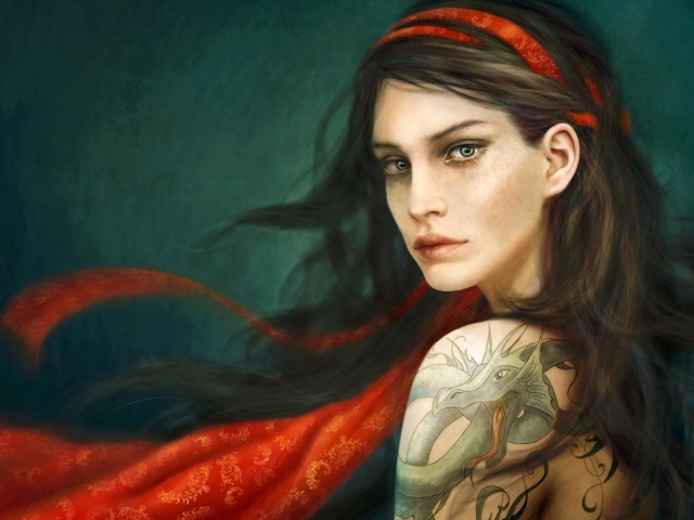Обои: Грустная девушка с тату дракона на плече