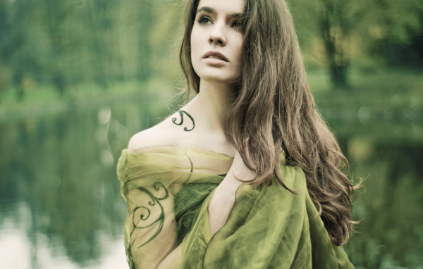 Девушка на природе с татуировкой на руке Обои для рабочего стола 600x382