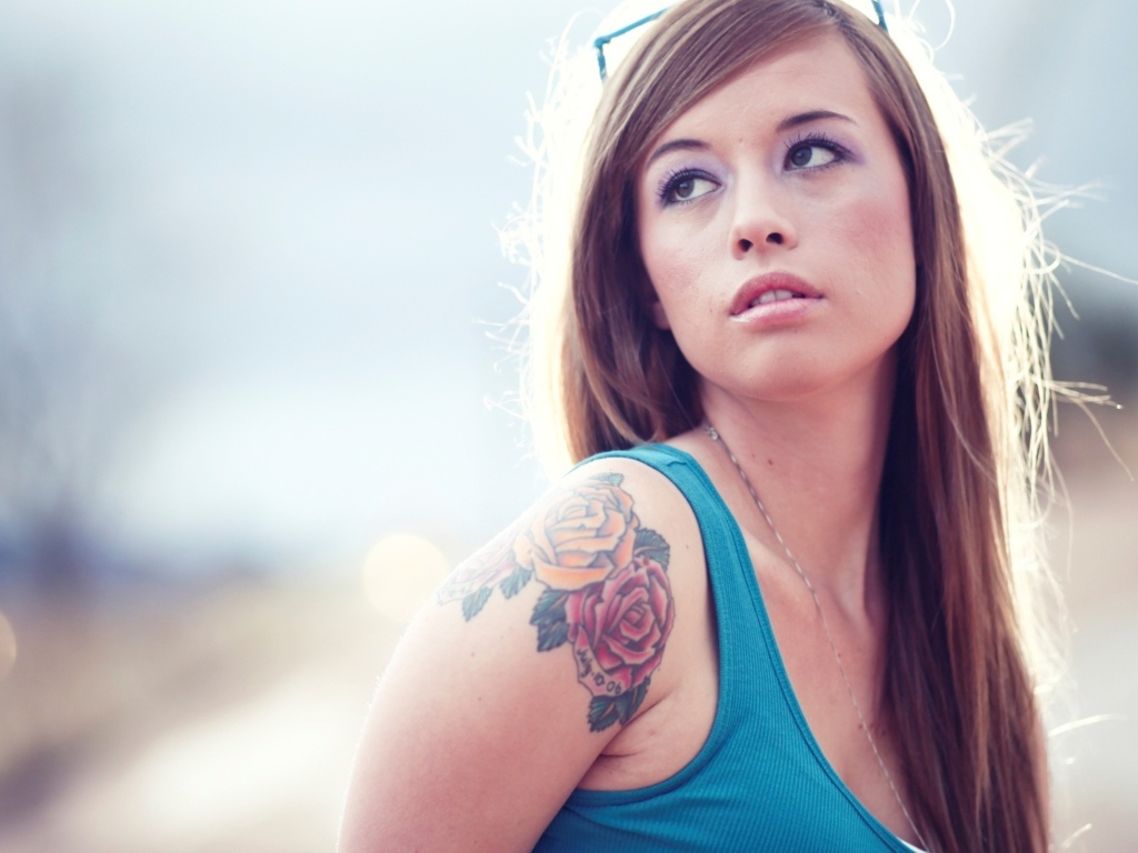 Татуировка розы на плече у девушки Обои для рабочего стола 1024x768