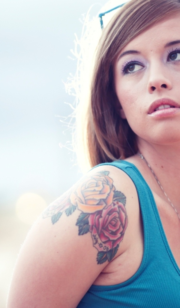 Татуировка розы на плече у девушки Обои для рабочего стола 600x1024