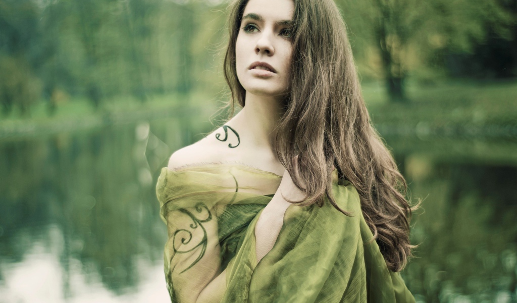 Девушка в зеленом с тату - 2560x1600