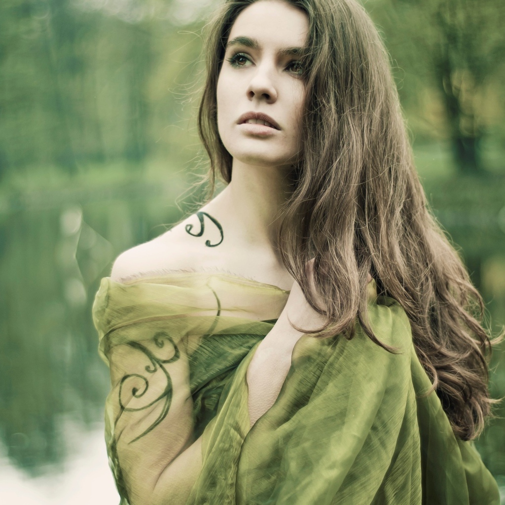 Девушка в зеленом с тату Обои для рабочего стола 1024x1024