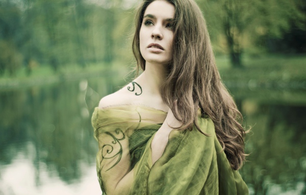 Девушка в зеленом с тату Обои для рабочего стола 600x382