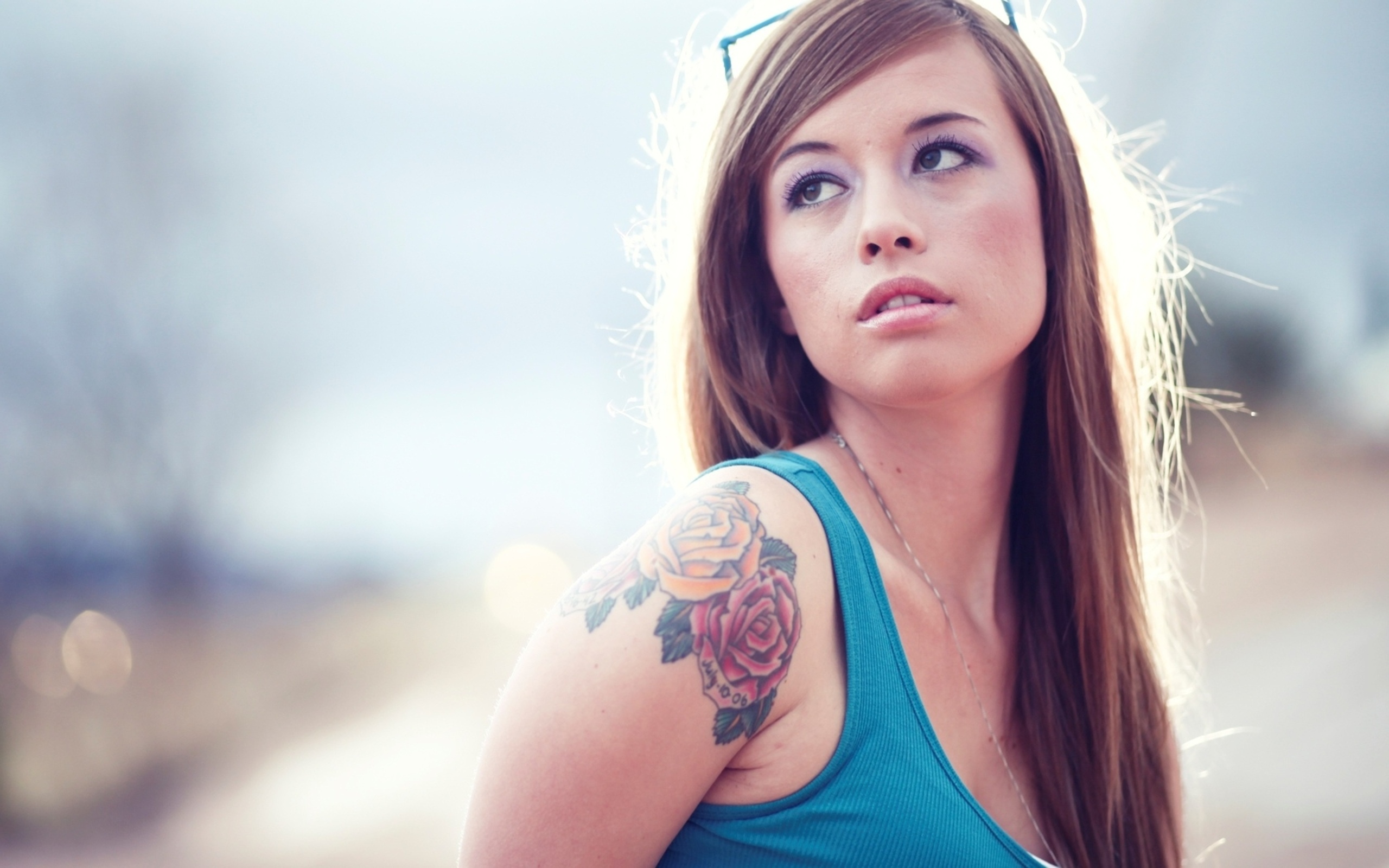 Девушка с тату розы Обои для рабочего стола 2560x1600
