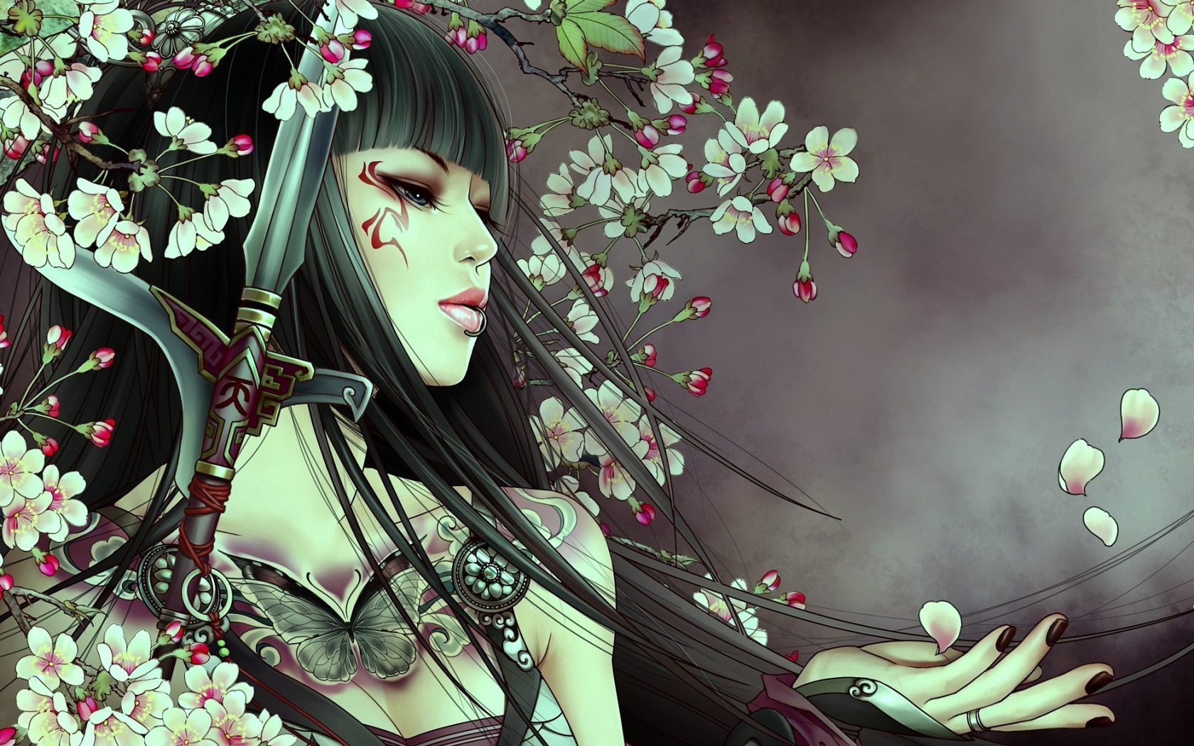 Девушка самурай с татуировкой Обои для рабочего стола 1680x1050