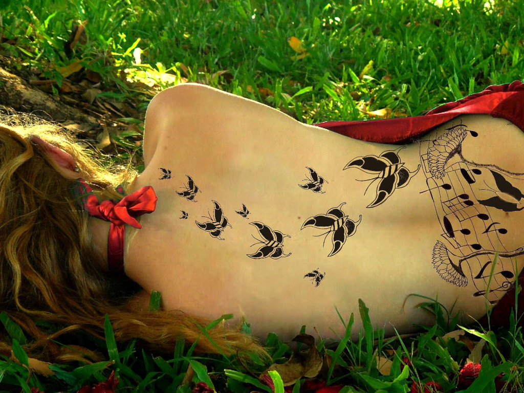 Бабочки тату на спине у девушки Обои для рабочего стола 1024x768