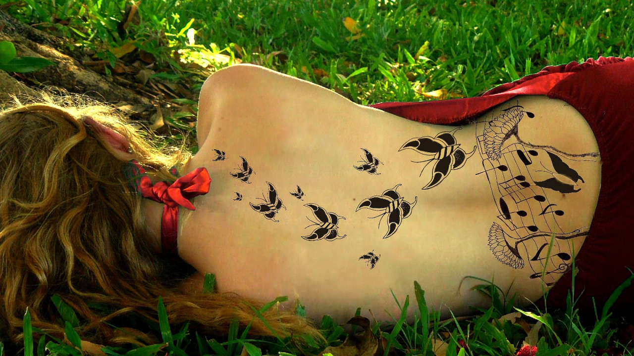 Бабочки тату на спине у девушки Обои для рабочего стола 1280x720