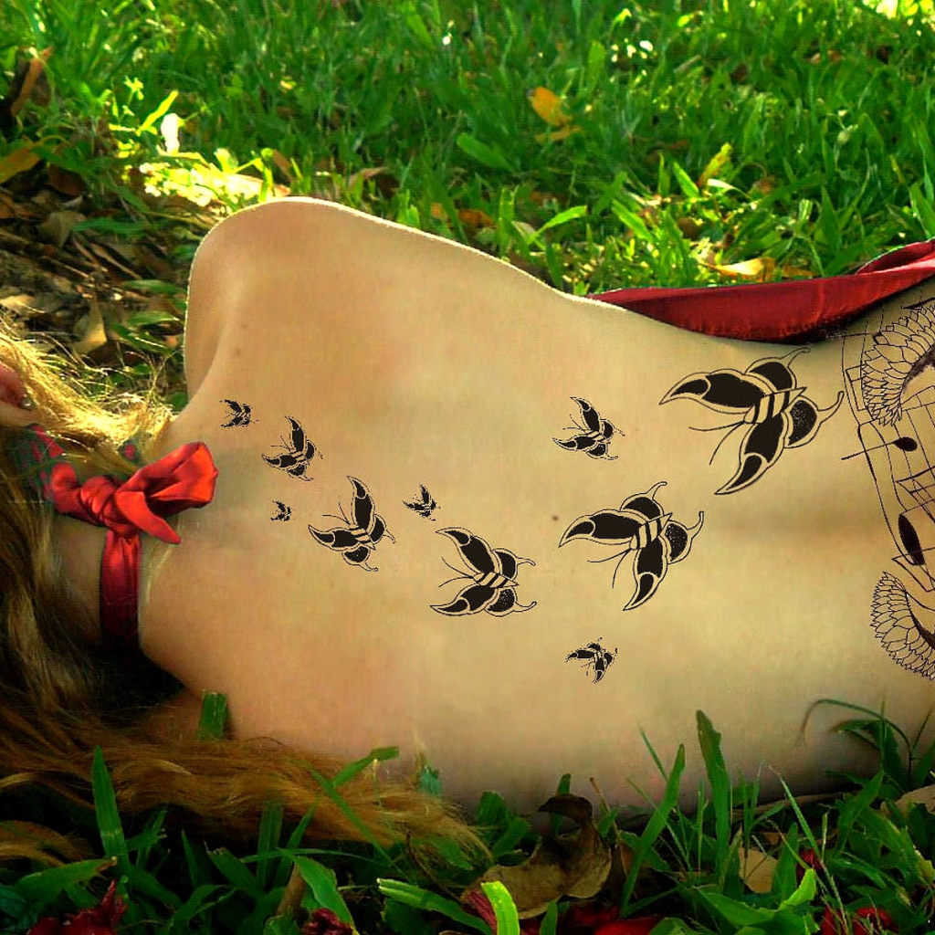 Бабочки тату на спине у девушки Обои для рабочего стола 1024x1024