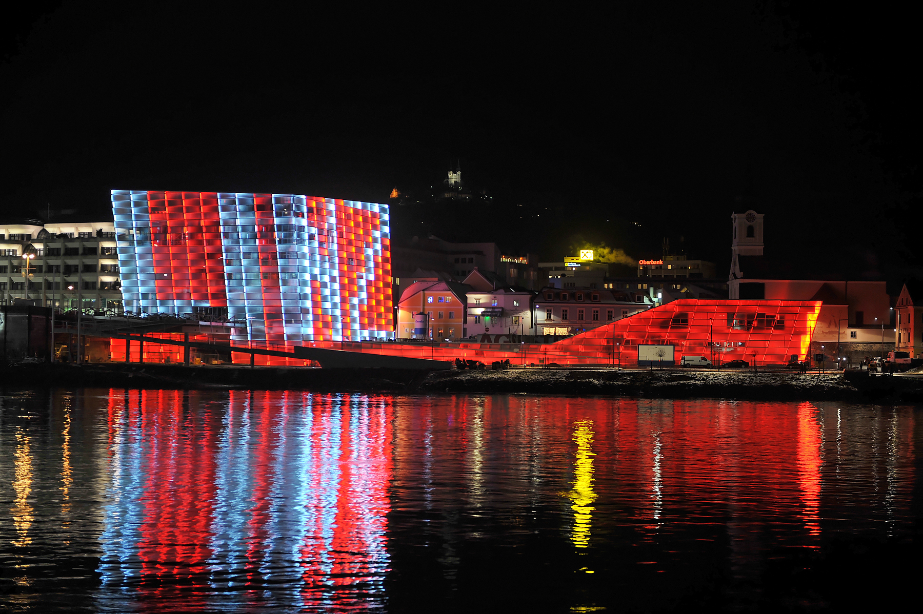 Обои: Ночная иллюминация в городе Линц, Австрия
