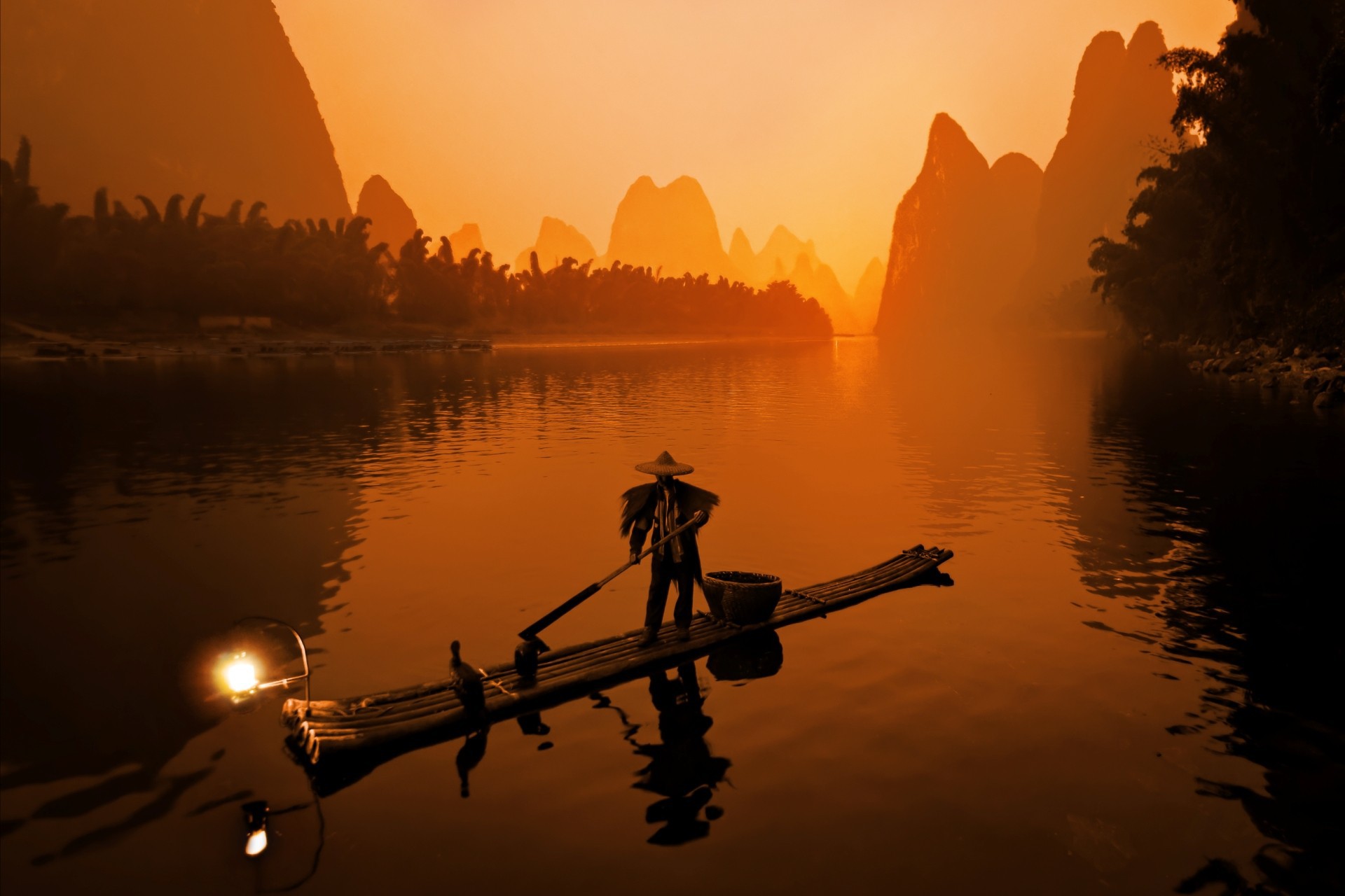 Китайский рыбак на восходе солнца - 1920x1280