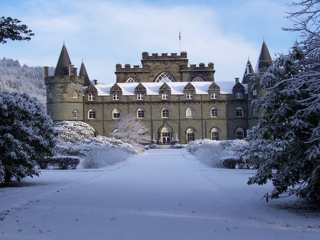 Заснеженный замок в Шотландии Обои для рабочего стола 1024x768