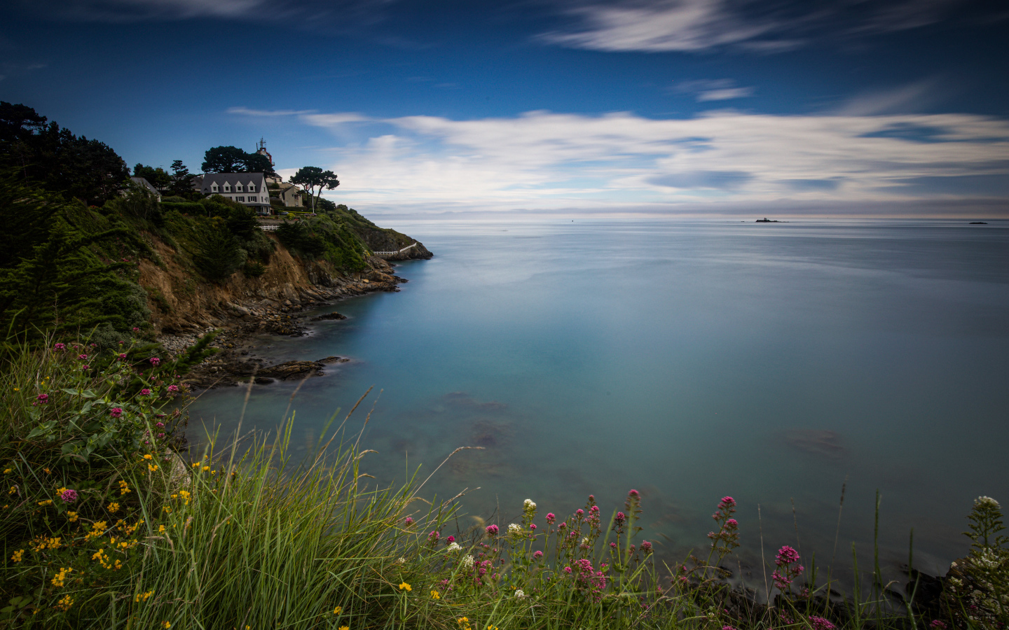 Дом на морском побережье в сумерках, Франция Обои для рабочего стола 1440x900