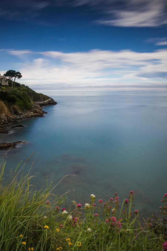 Дом на морском побережье в сумерках, Франция Обои для рабочего стола 640x960