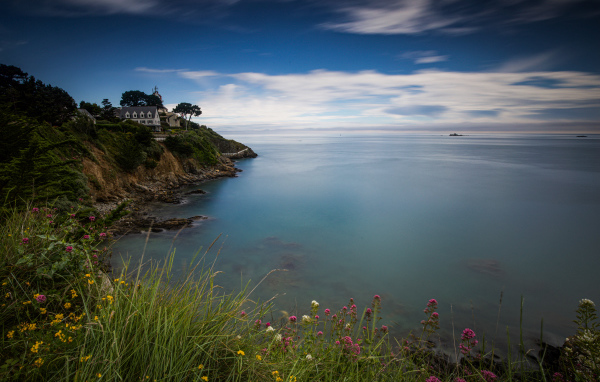 Дом на морском побережье в сумерках, Франция Обои для рабочего стола 600x382