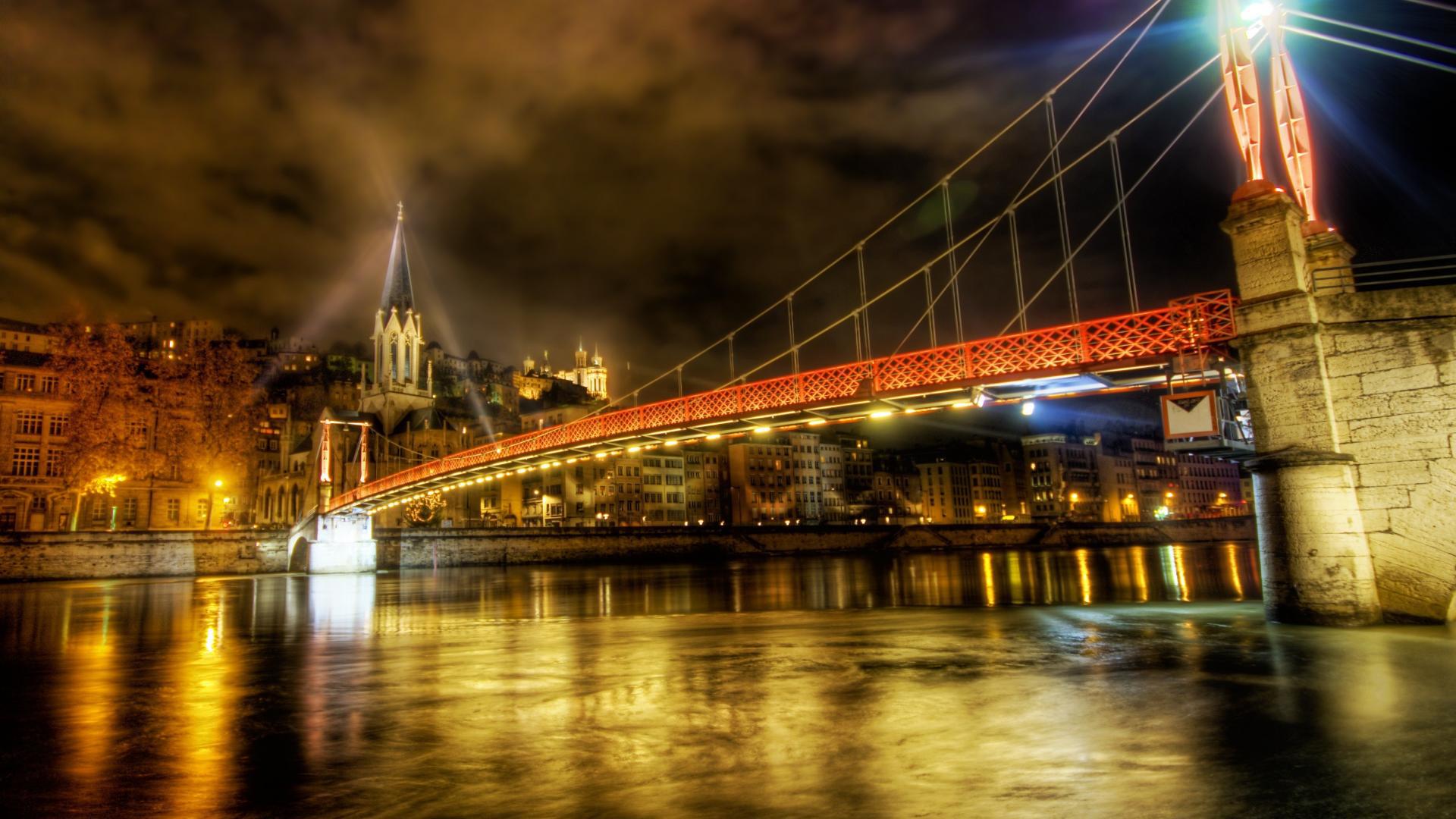 Сияющий мост в городе Лион, Франция - 1920x1080