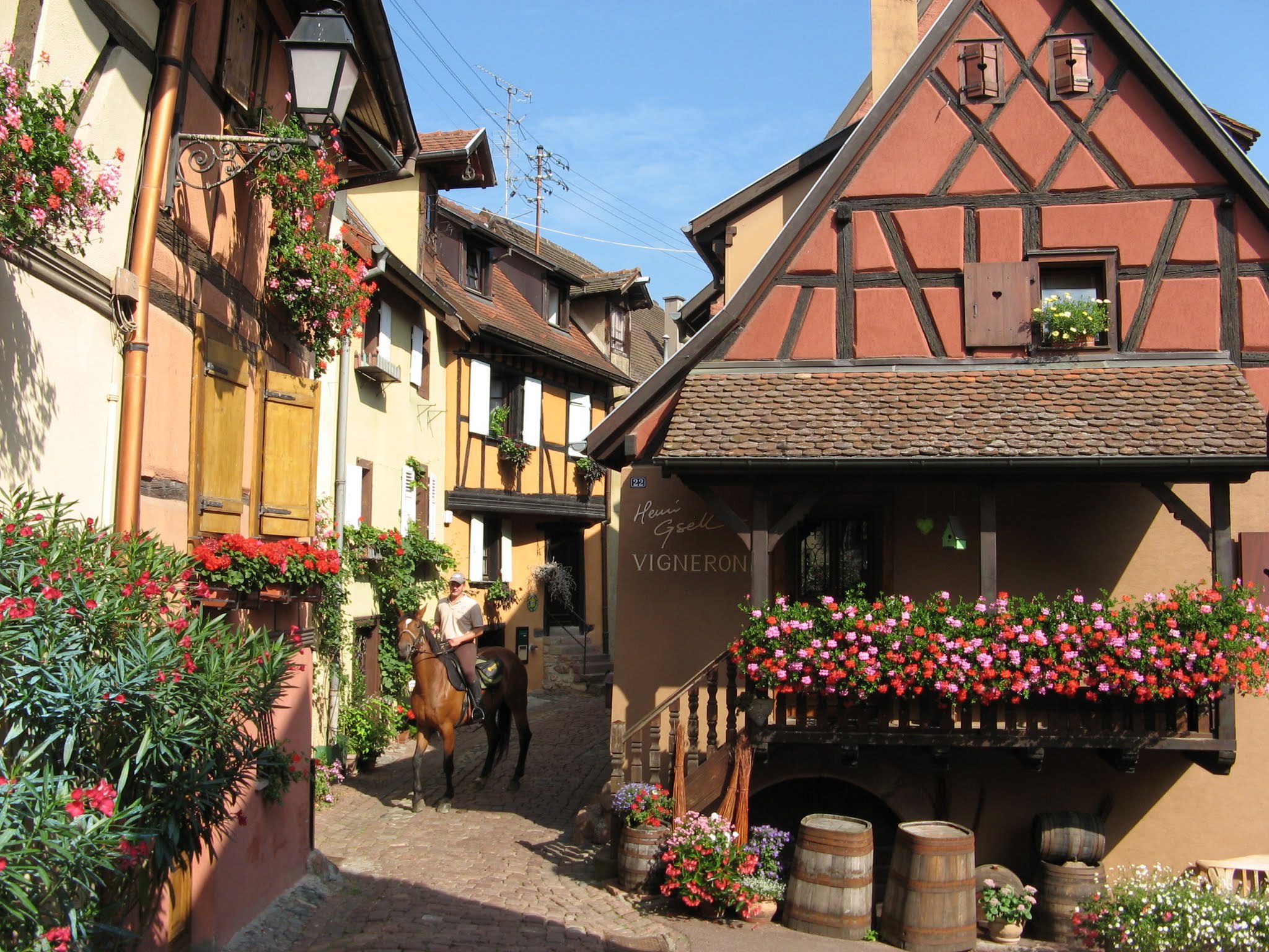 Цветущая улица в Эльзасе, Франция - 2048x1536