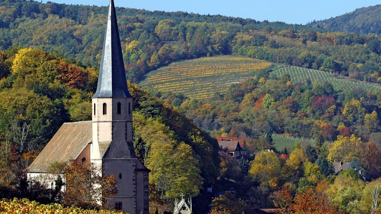 Церковь в Эльзасе, Франция Обои для рабочего стола 1280x720