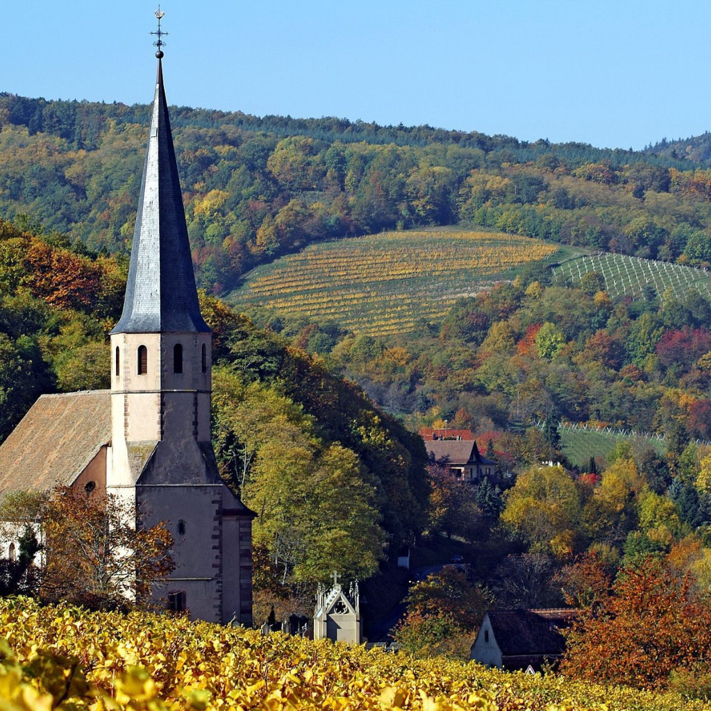 Церковь в Эльзасе, Франция Обои для рабочего стола 1024x1024