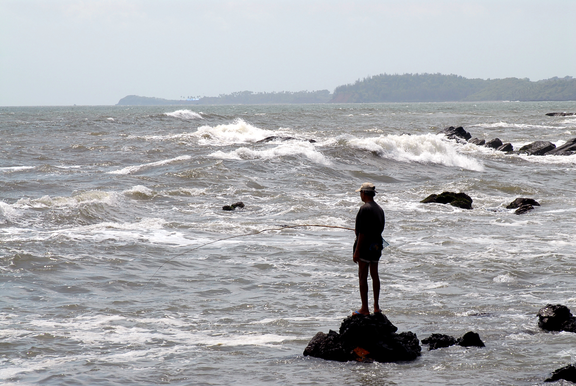 Мужчина ловит рыбу в Гоа - 1936x1296