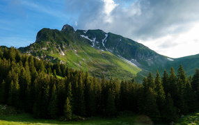 Красивый вид на покрытые зеленью Швейцарские Альпы