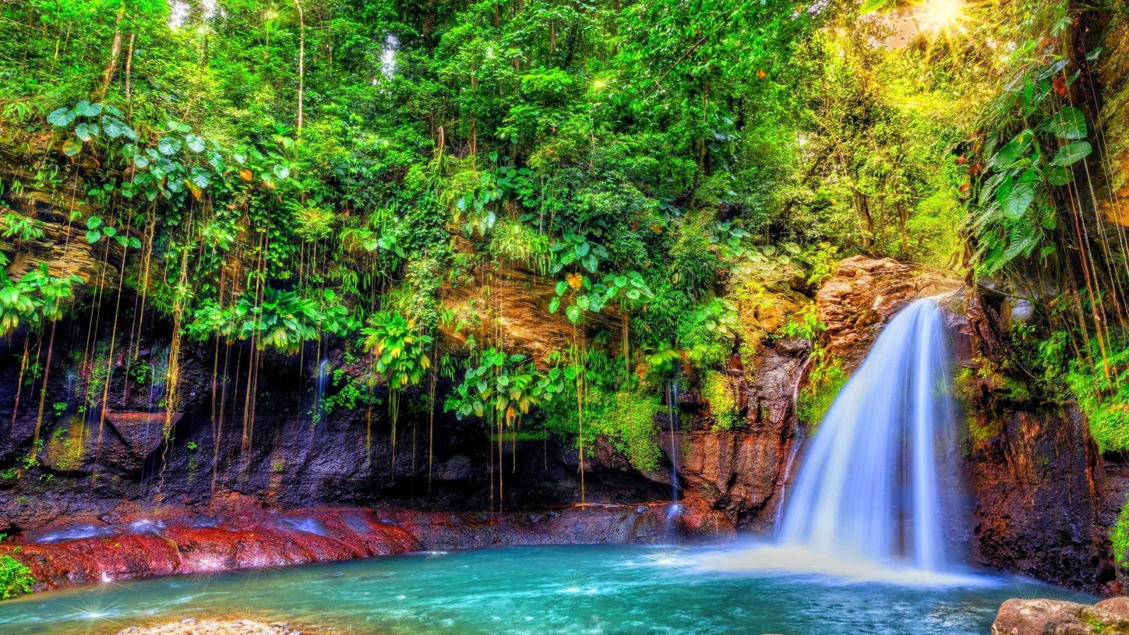 Водопад в джунглях острова Гваделупа Обои для рабочего стола 1600x900