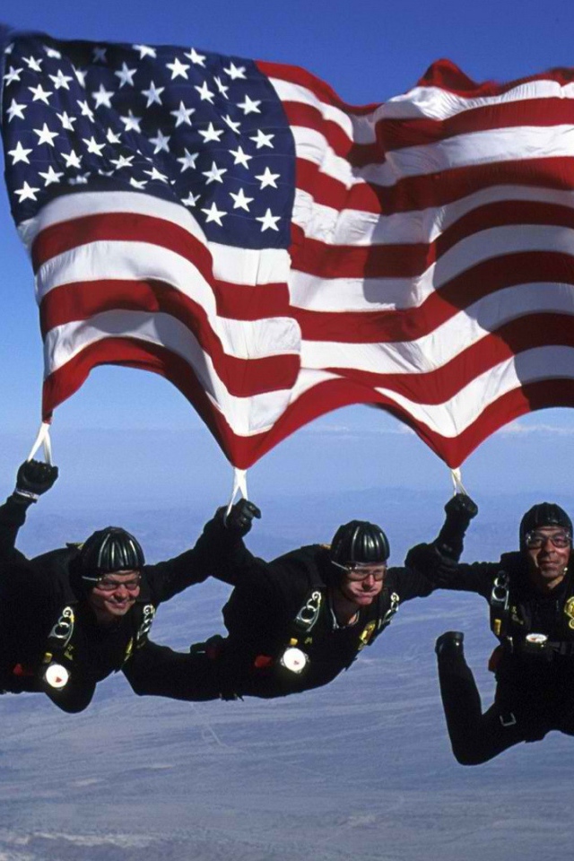 Парашютисты с американским флагом Обои для рабочего стола 640x960