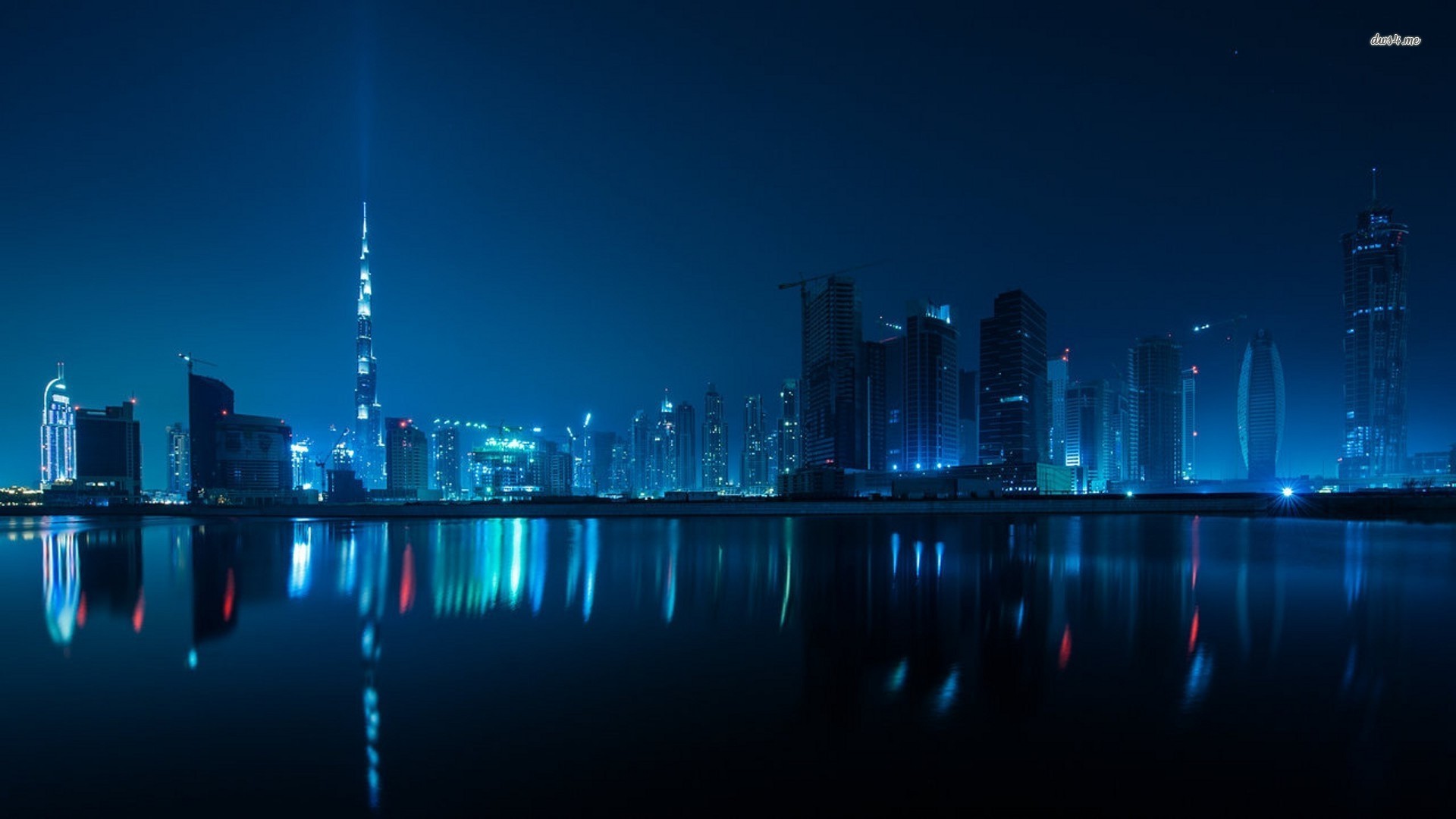 Вид на небоскреб Бурдж-Халифа ночью, Дубай. ОАЭ
