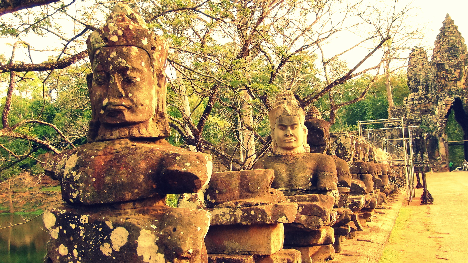 Индуистские статуи у храмового комплекса Ангкор Ват - 1920x1080